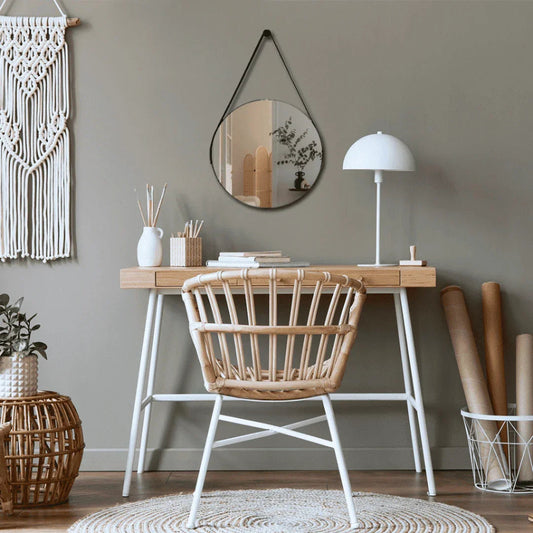 Espelho Redondo Adnet Couro Com Alça + Suporte 60cm