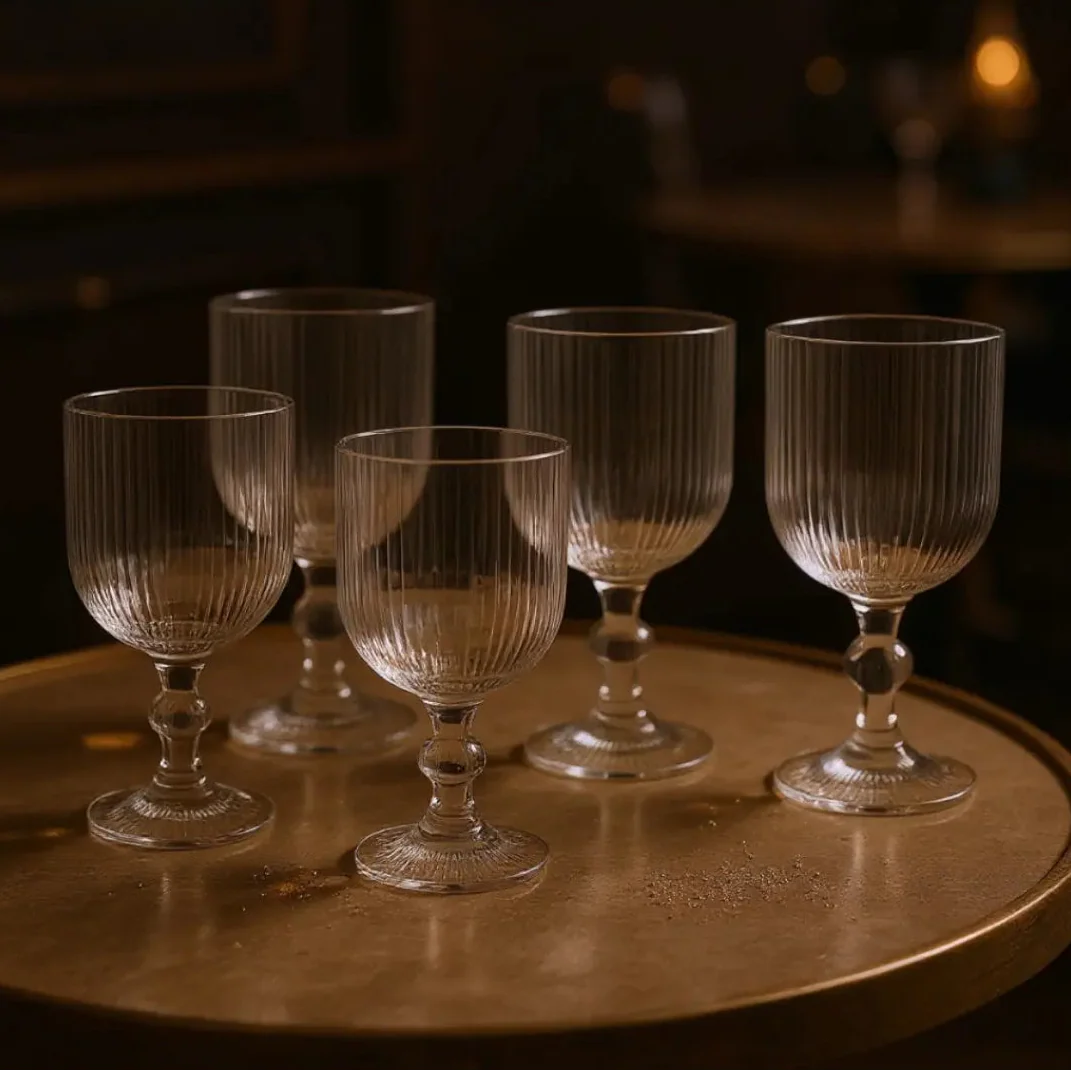 Conjunto de 6 Taças Caneladas de Vidro Transparente – Elegância em Cada Detalhe