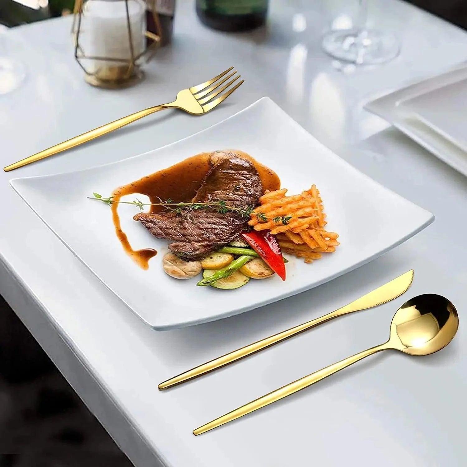 Com acabamento dourado impecável e design moderno, este conjunto é mais que funcional: é uma verdadeira peça de decoração à mesa. Além da estética, os utensílios são fabricados em aço inoxidável de alta qualidade , garantindo durabilidade, resistência à corrosão e brilho por muito mais tempo.
