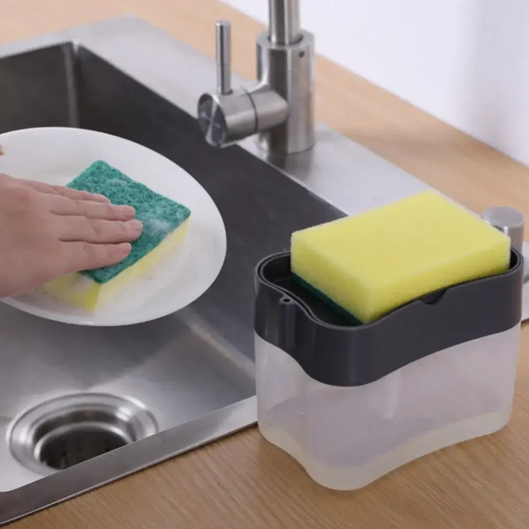 Dispenser detergente 2 em 1 com Porta Esponja – Praticidade e Organização na Sua Pia