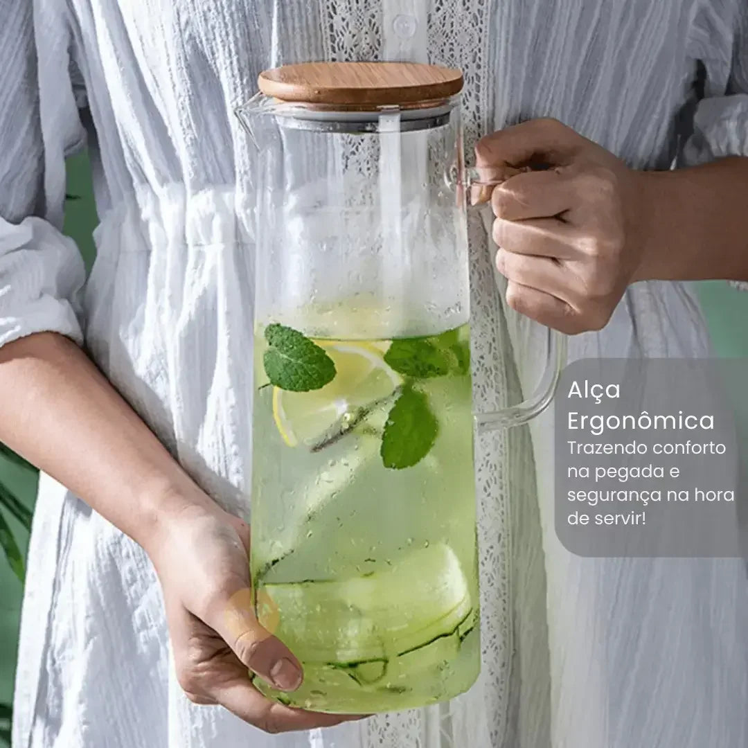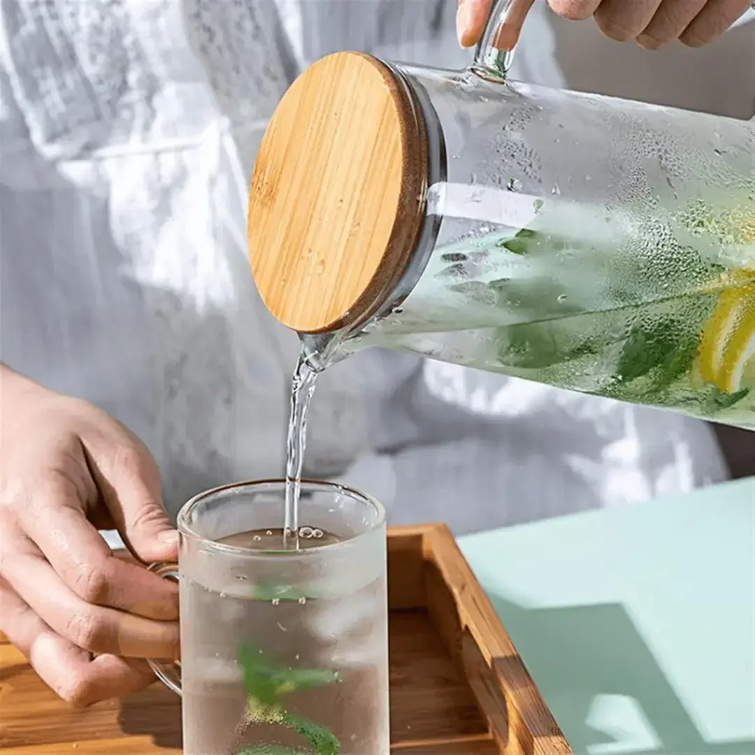Jarra de Vidro com Tampa de Bambu – Sofisticação e Sustentabilidade à Mesa