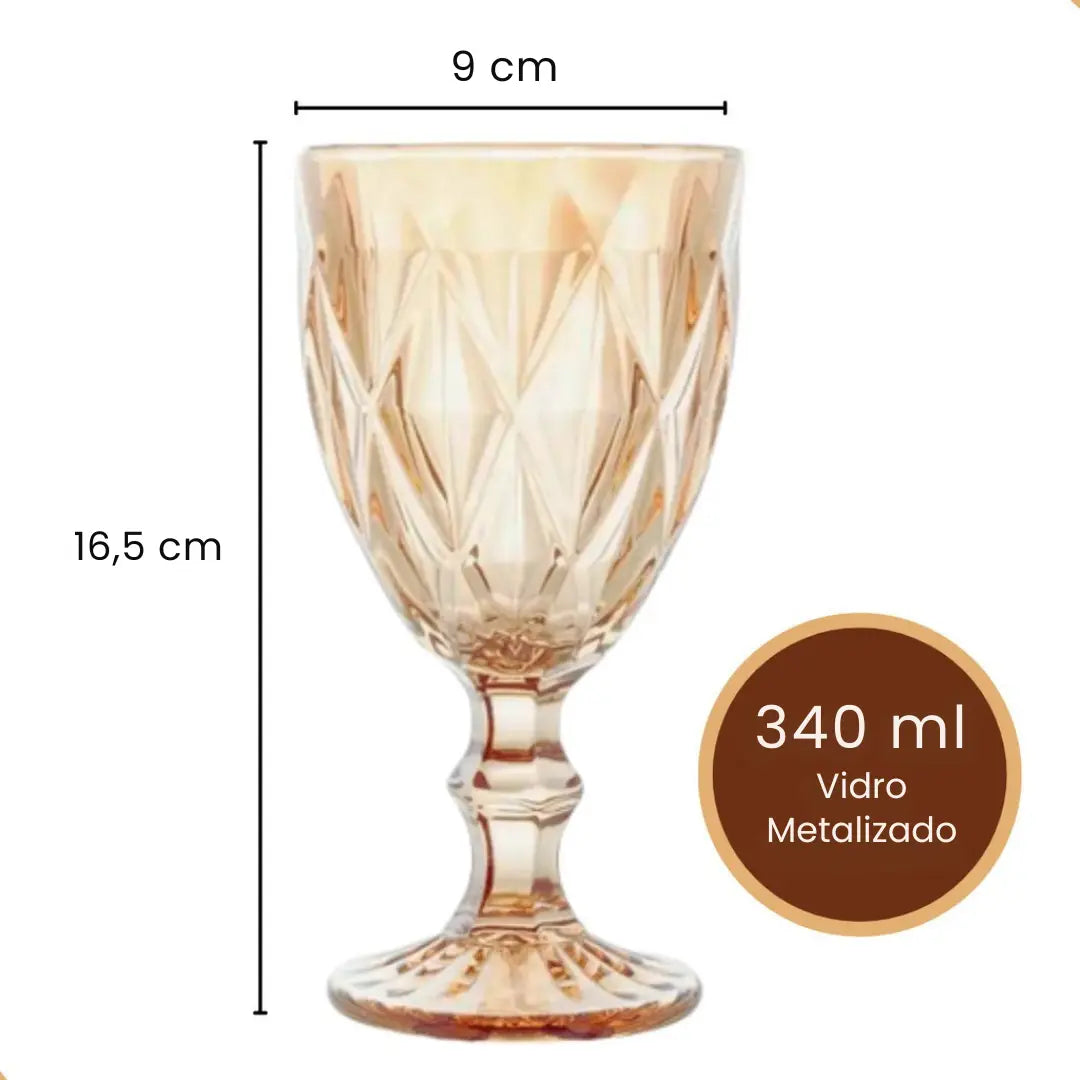 Jogo de Taças Diamond 6 peças Ãmbar – Elegância e Sofisticação para Sua Mesa