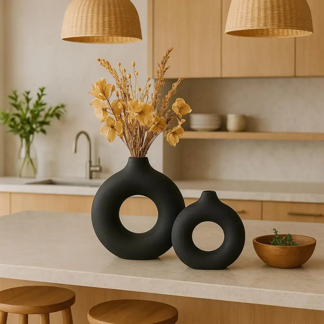 Kit 2 Vasos Redondos Donut – Design Moderno e Minimalista para Decorar com Elegância
