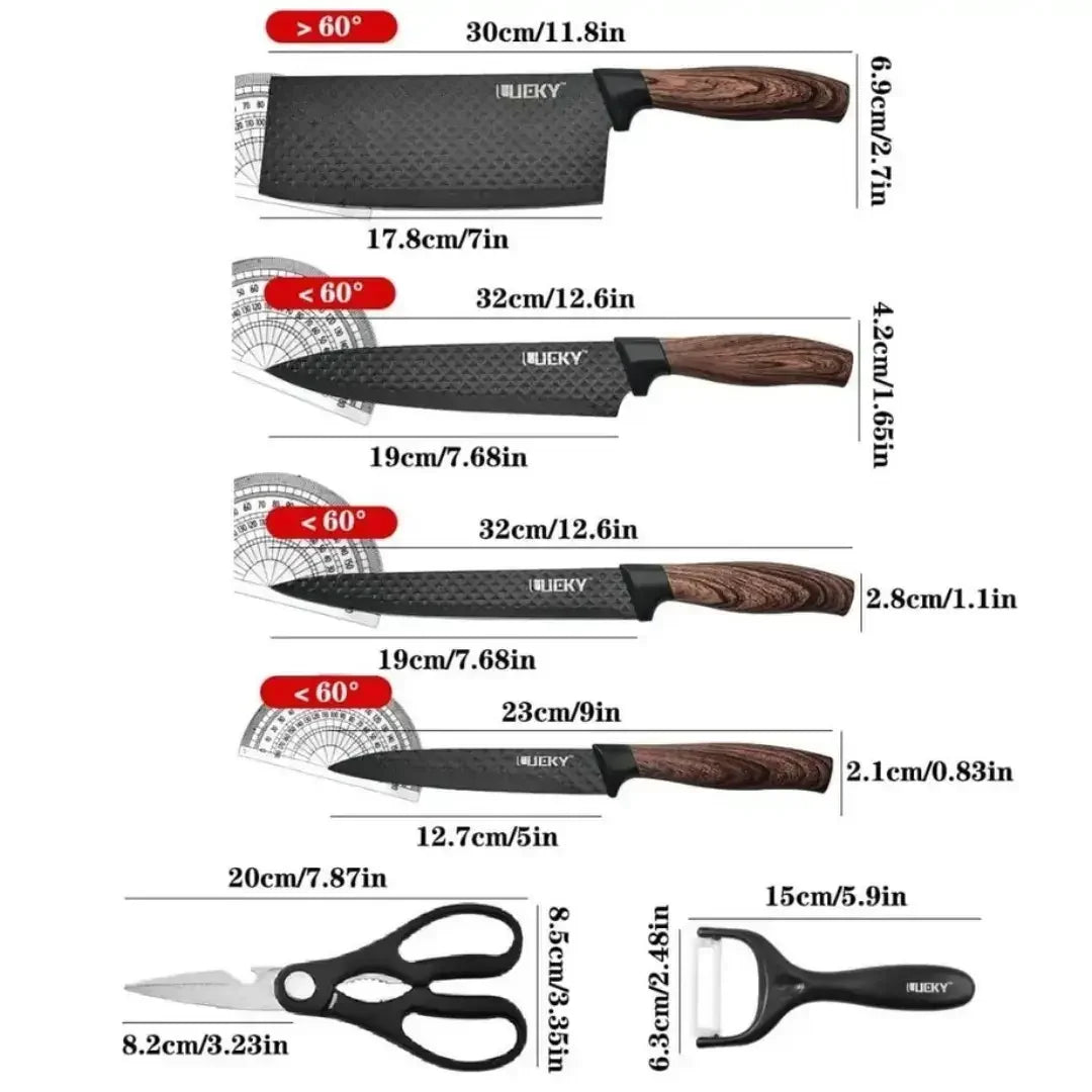 Kit de Facas 6 Peças com Tesoura e Descascador – Estilo, Precisão e Versatilidade na Sua Cozinha