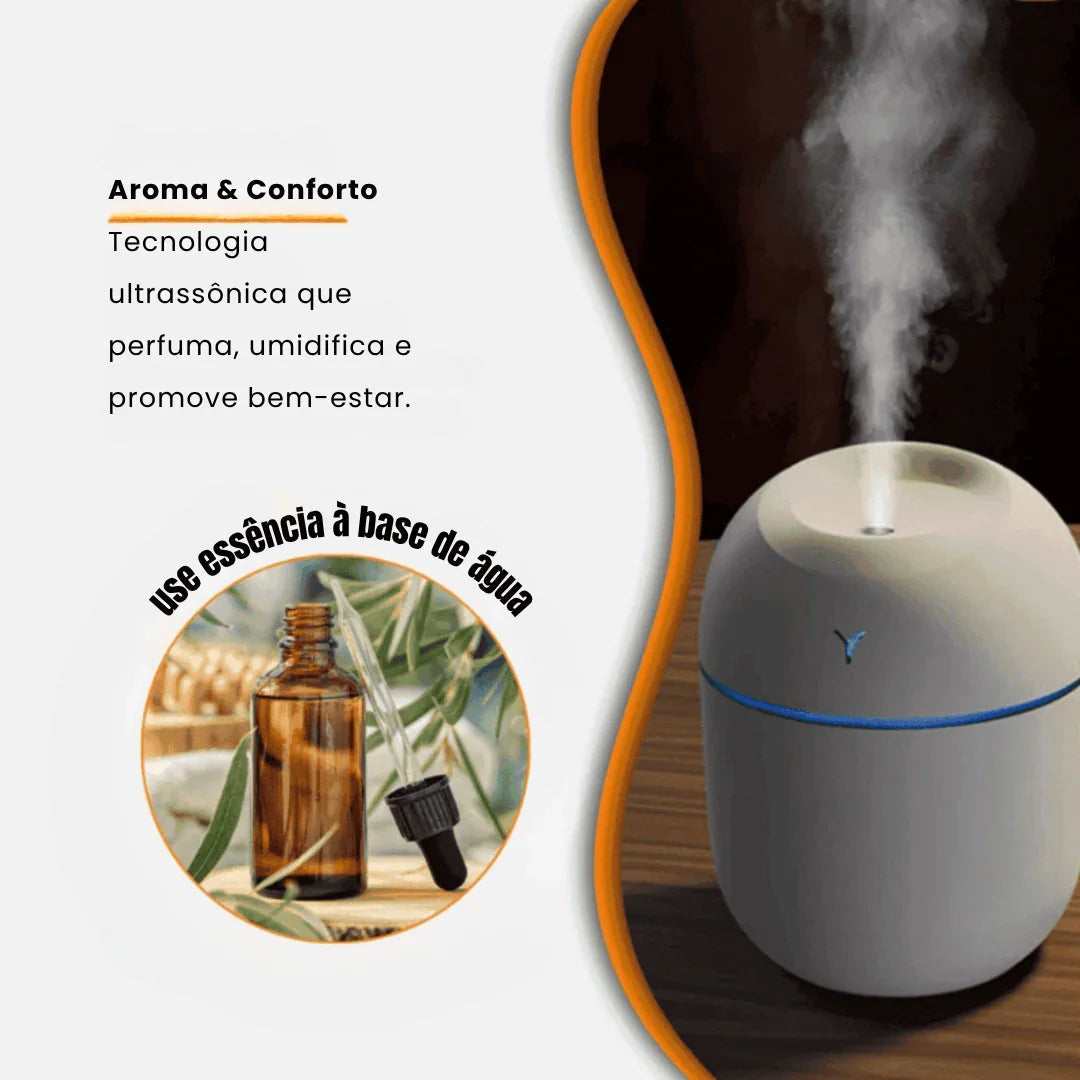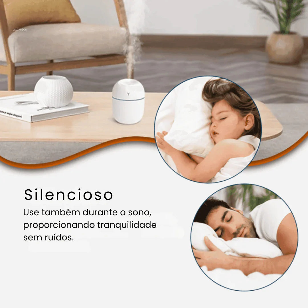 Esse mini umidificador é a solução prática para melhorar a ar do ambiente em casa, no trabalho ou em viagens . Silencioso, elegante e eficaz — ideal para quem valoriza conforto e bem-estar.