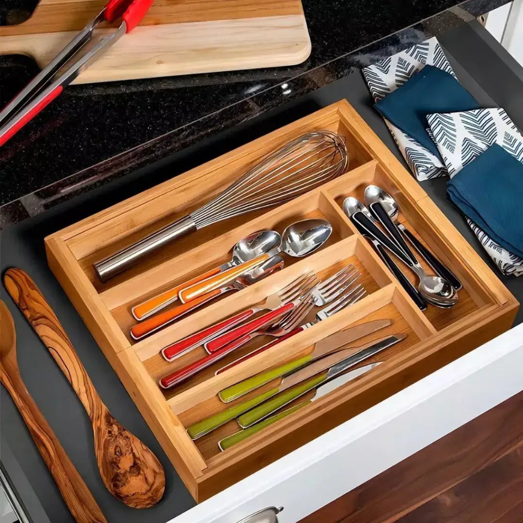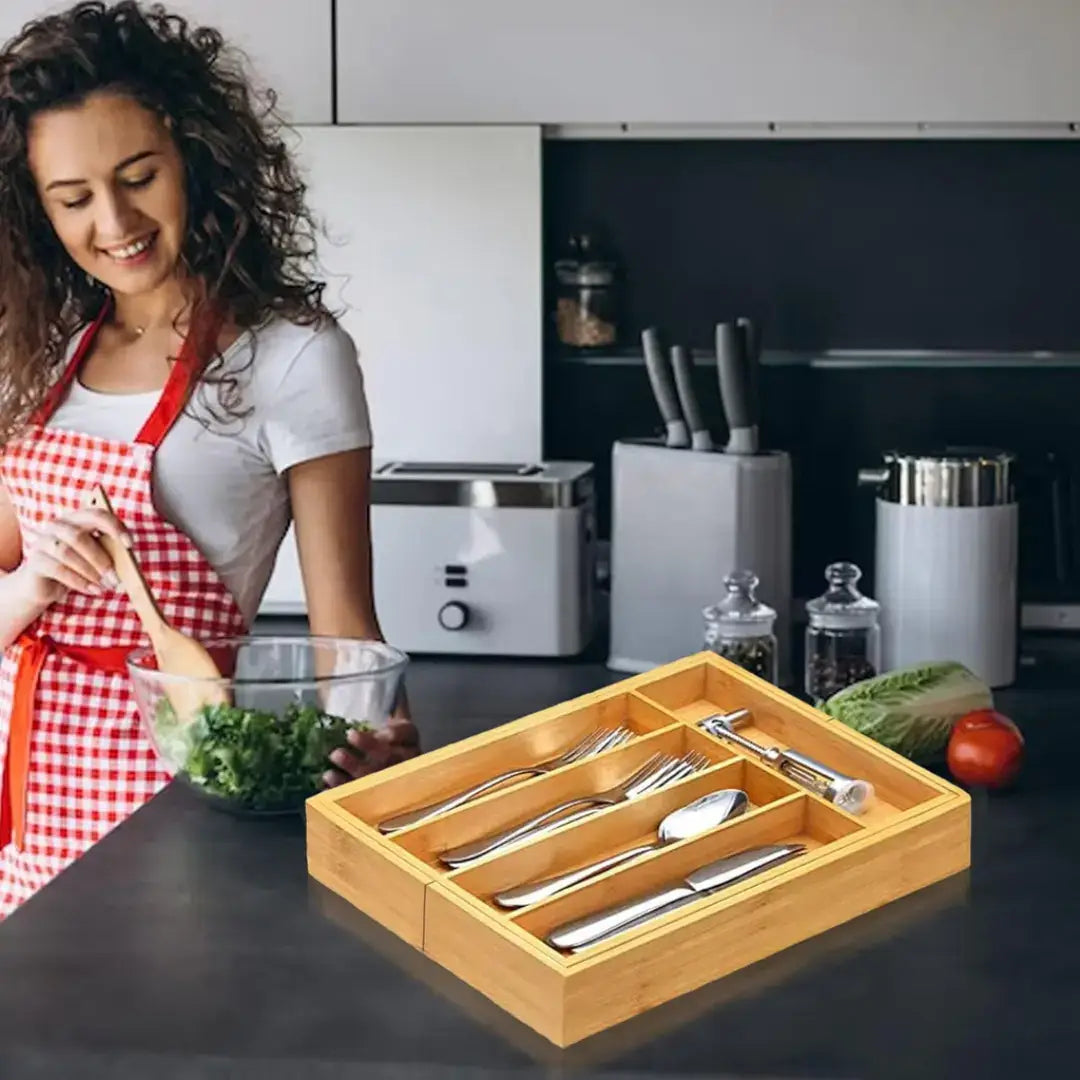 Porta Talheres em Bambu Extensível – Organização com Estilo Natural